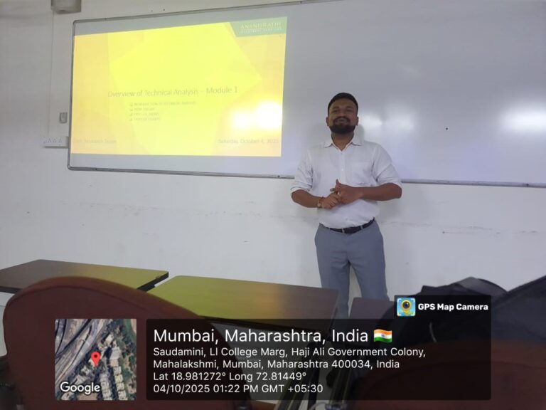 A guest session on Financial Interview Mastery was conducted by Mr. Hansil Shah, Deputy Manager at Anand Rathi, on 4th October 2025 from 1:00 PM to 3:00 PM. The session focused on preparing students for job opportunities in Finance, Wealth Management, and Research Analysis. Mr. Shah covered various core areas of finance, explained important financial ratios, and discussed concepts such as pledge and borrowing of stocks. The session also included guidance on handling basic interview questions and understanding market dynamics. Around 60 students attended and found the session informative, engaging, and insightful.